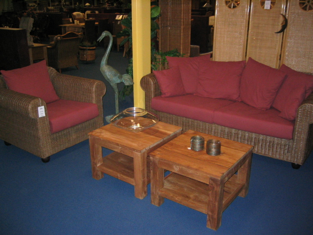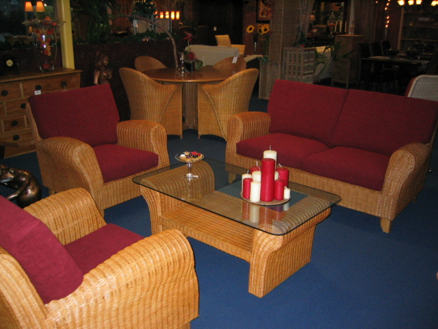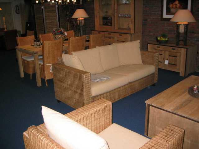 tafeltje met glas en 3 zits bank Amazone fauteuil en bank chita