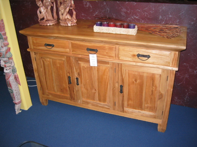 3 deurs dressoir teak van 795,- voor 595, - 4 deurs dressoir teak van 995,- voor 645,-